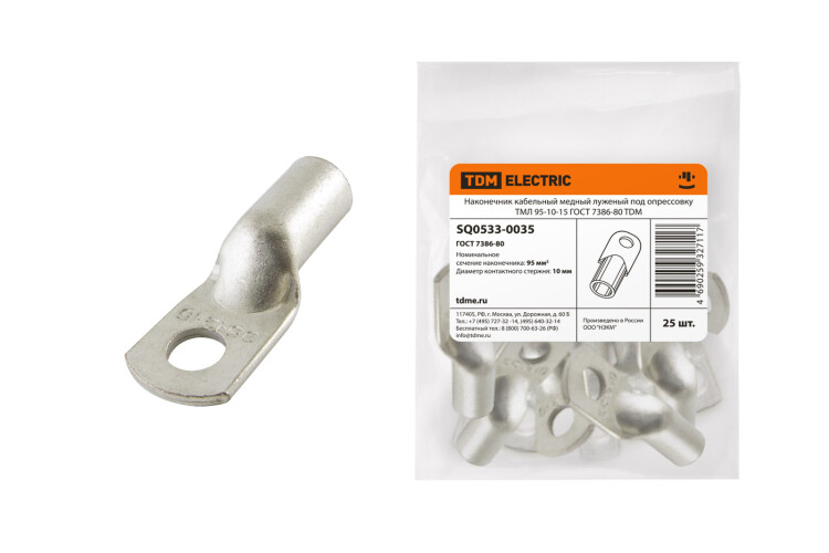 TDM Наконечник кабельный медный луженый под опрессовку ТМЛ 95-10-15 ГОСТ 7386-80