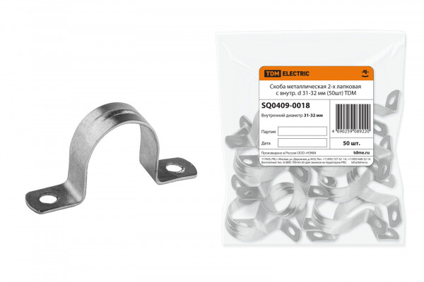 Скоба металлическая 2-х лапковая с внутр. d 31-32 мм (50шт)