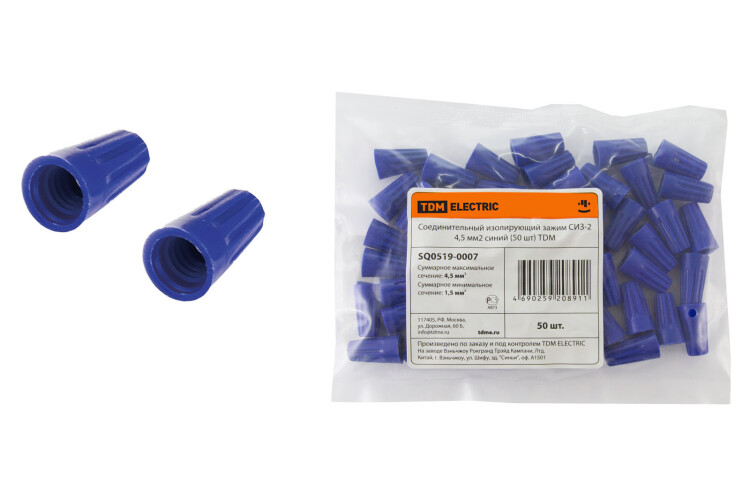 TDM Соединительный изолирующий зажим СИЗ-2 4,5 мм2 синий (50 шт)