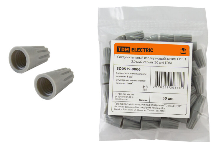 TDM Соединительный изолирующий зажим СИЗ-1 3,0 мм2 серый (50 шт)