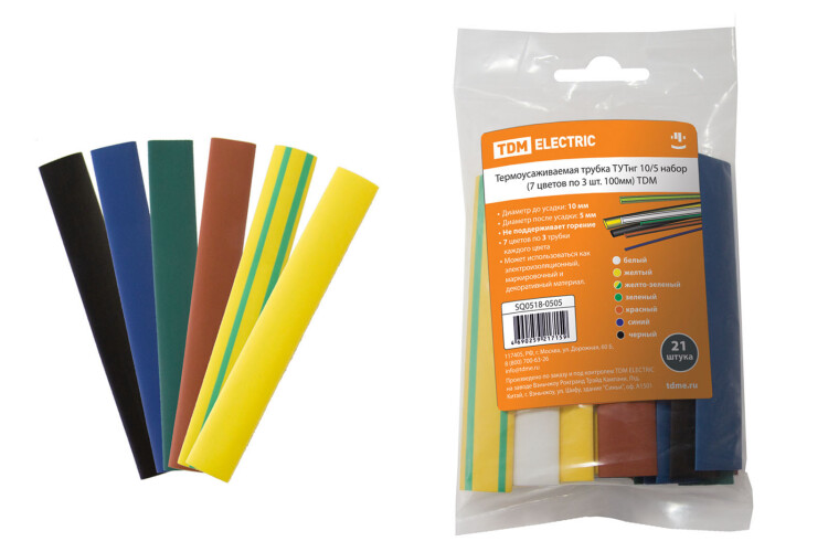TDM Термоусаживаемая трубка ТУТнг 10/5 набор (7 цветов по 3 шт. 100мм)