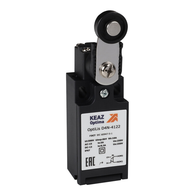 КЭАЗ Выключатель концевой OptiLiS D4N-4122 рычаг металлический с роликом пластиковым EN 50047 XCKN2118P20