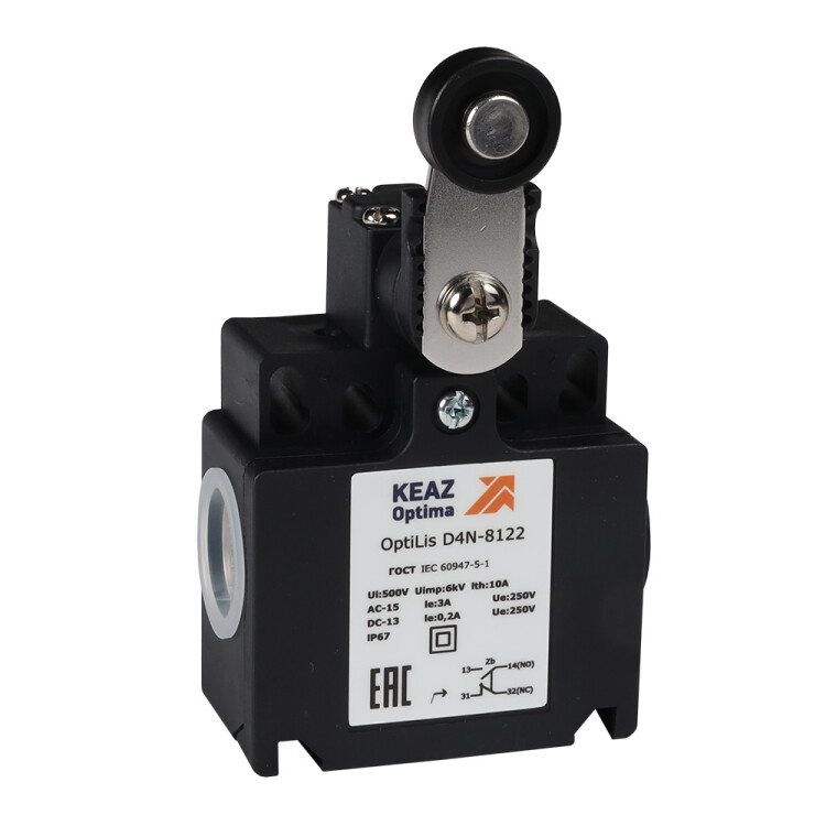 КЭАЗ Выключатель концевой OptiLiS D4N-8122 рычаг металлический с роликом пластиковым EN 50047 XCKT2118P16