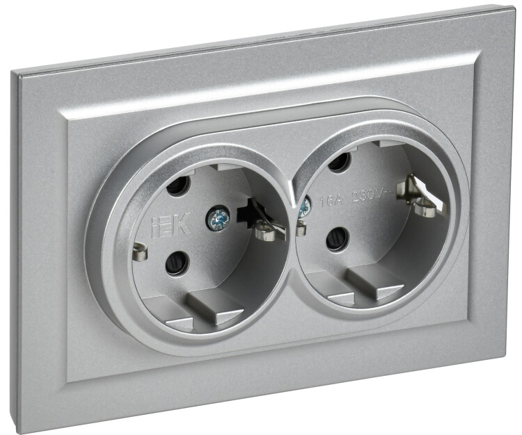 IEK BRITE Алюминий Розетка 2-м с/з с защ шторк 16А в сборе РСш12-3-БрА
