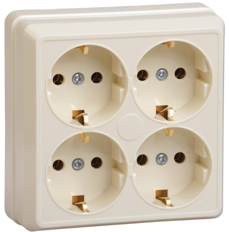 IEK OKTAVA РС24-3-ОК Розетка 4местн. с з/к 16А откр.уст. (кремовый)