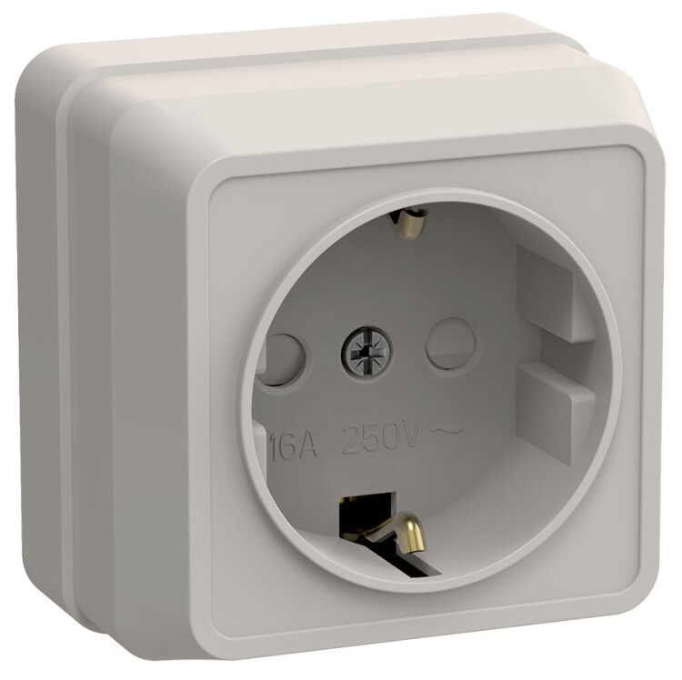 IEK OKTAVA РСш20-3-ОКм Розетка 1местн. c з/к с защ.штор.16А откр.уст. (кремовый)
