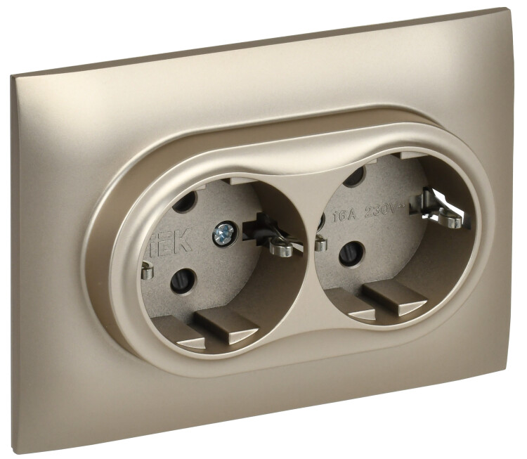 IEK SKANDY Шампань Розетка 2-ая с/з с защитными шторками 16А в сборе SK-R07Sh