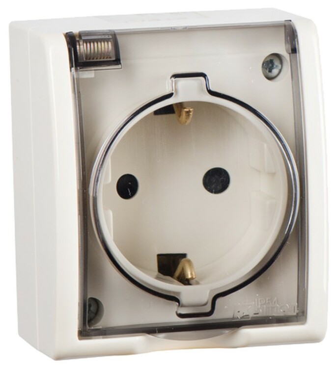 Simon 15 Aqua Бежевая Розетка 1-ая с/з с крышкой наружная, IP54