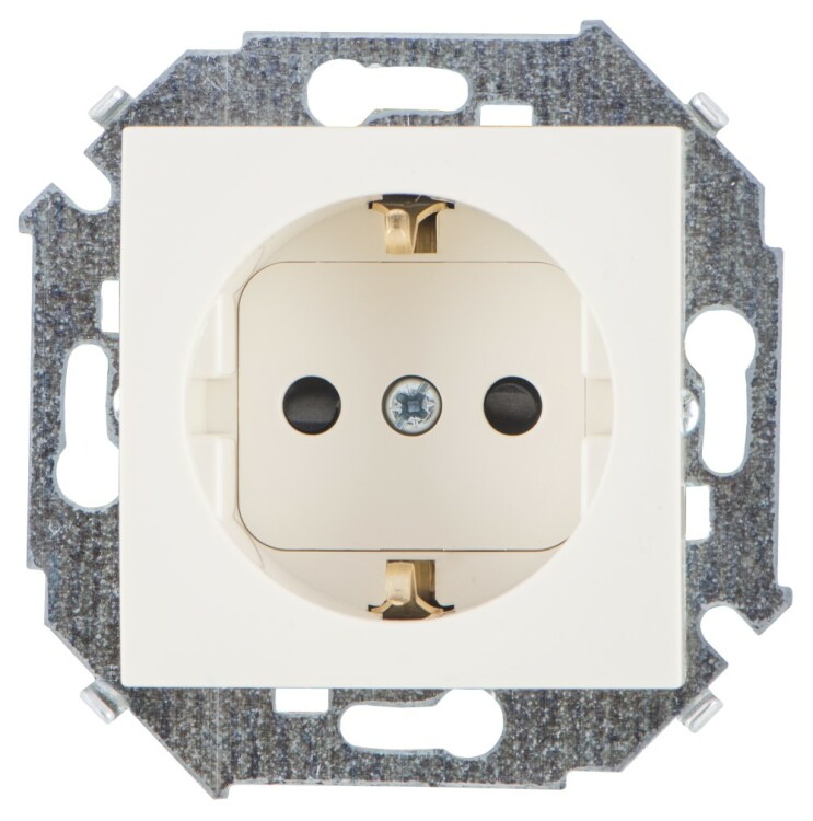 Розетка 2P+E Schuko, со шторками, 16А, 250В, винтовой зажим, слоновая кость