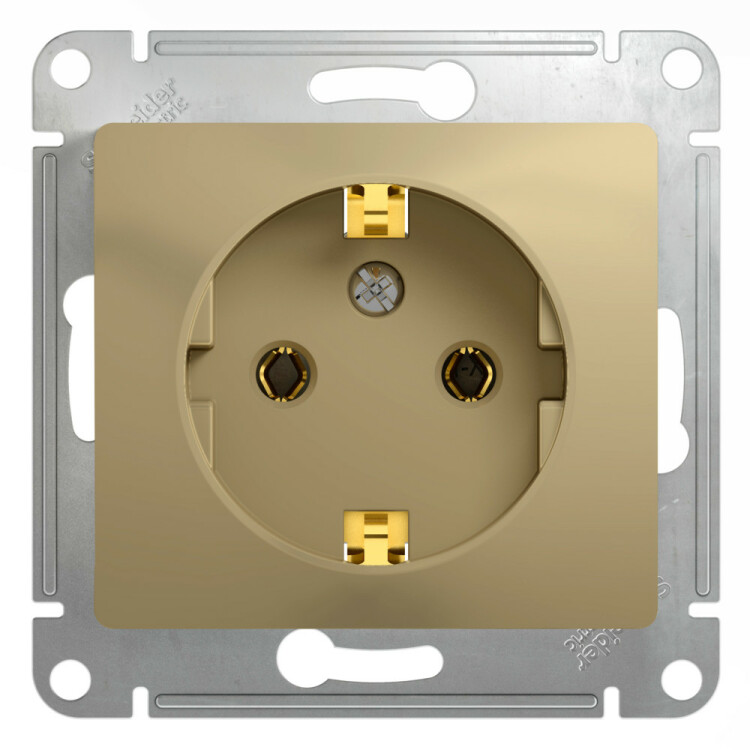 Механизм Systeme Electric (ранее Schneider Electric) серии Glossa (цвет титан) розетки одинарной с заземлением и без шторок подходит для сетей 250 В, на ток 16 А.