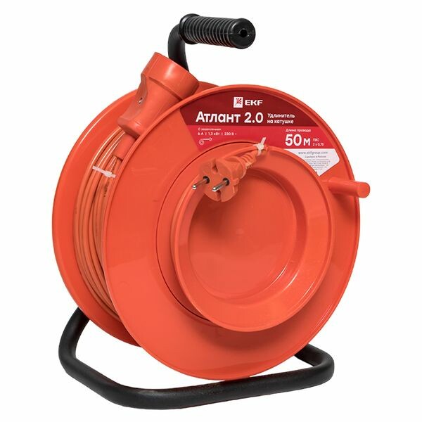 EKF PROxima Удлинитель на катушке "Атлант 2.0" 1 гнездо 50м без заземления ПВС 2*0,75 6А/1,3кВт