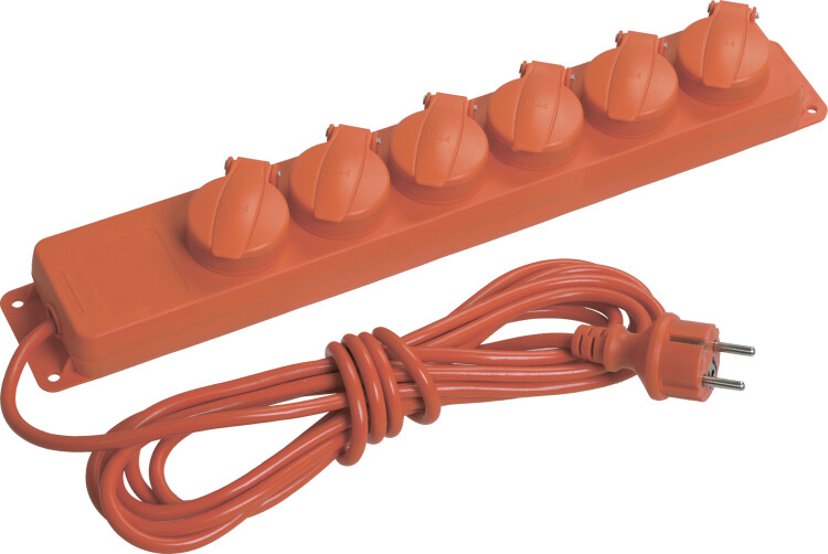 Промышленные удлинители с защитными крышками незаменимы при ремонтных и строительных работах. Яркий цвет изделий привлекает внимание, хорошо заметен в пыли и затемненных местах.