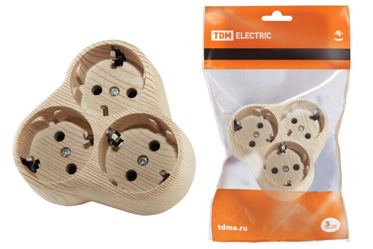 TDM Блок на 3 гнезда 2П+З круглый 16А 250B "Эко" (сосна)