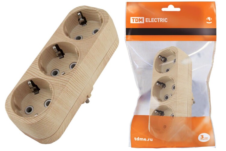 TDM Блок на 3 гнезда 2П+З плоский 16А 250B "Эко" (сосна)