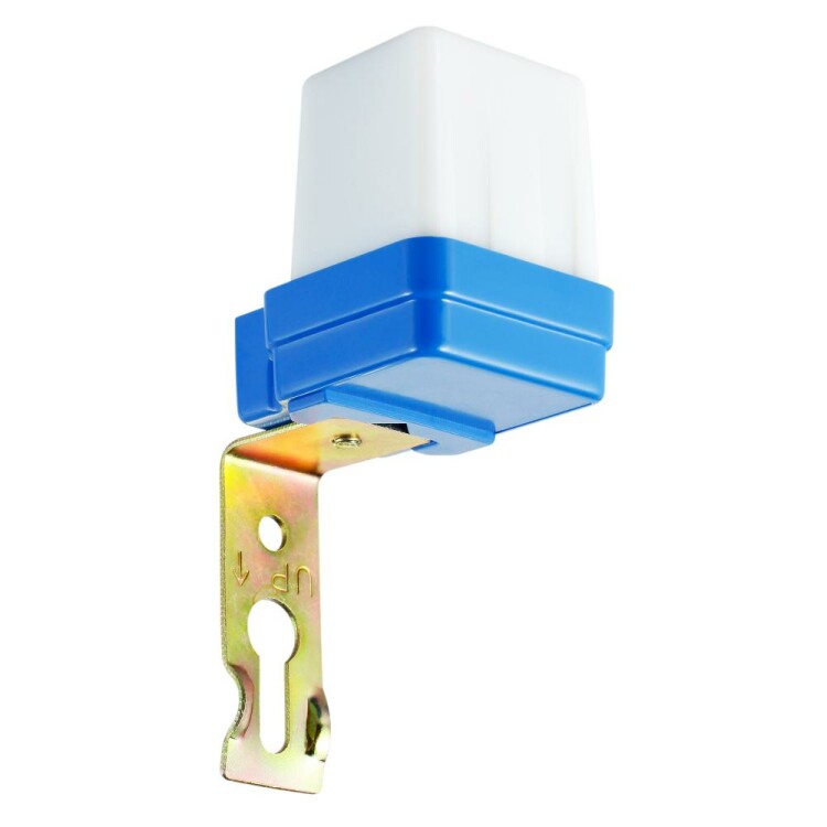 Реле включения освещения в зависимости от уровня внешней освещенности. Порог срабатывания 5-15 люкс, мощность 1200 вт, ток 6А, размеры 35x44х46 мм (без крепления), вес 80 г, 220-240VAC