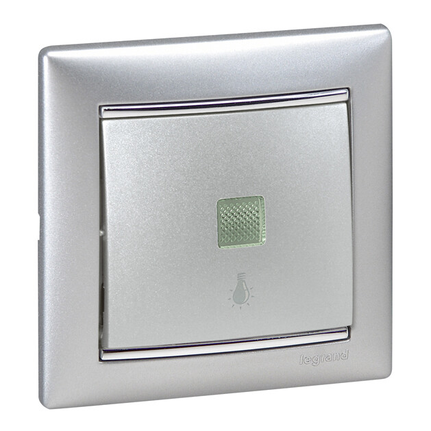Legrand Valena Алюминий Выключатель кнопочный 1-клавишный с подсветкой и с симовлом "лампа"