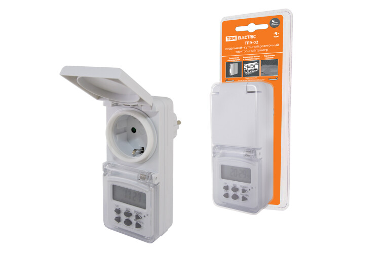 TDM Таймер розеточный ТРЭ-02-1мин/7дн-10on/off-8А-IP44 (недельный, защита от влаги)