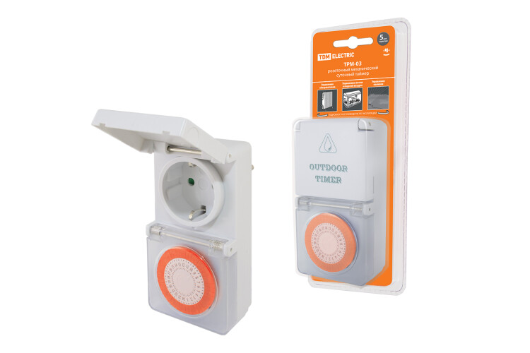 TDM Таймер розеточный ТРМ-03-30мин/24ч-16А-IP44 (суточный, защита от влаги)