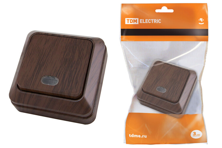 TDM Выключатель 1-кл. открытой установки с подсветкой IP20 10А, бук "Ладога"