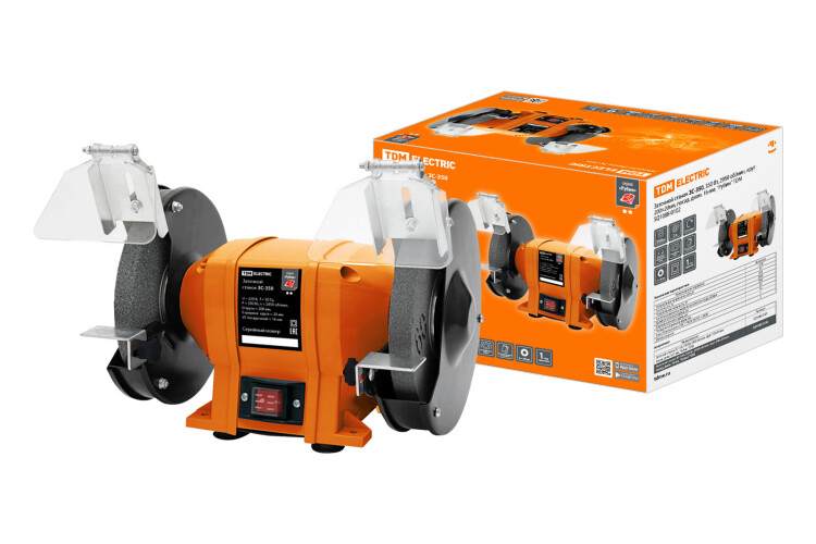 TDM Заточной станок ЗС-350, 350 Вт, 2950 об/мин, круг 200 ×20 мм, посад. диам. 16 мм, "Рубин"