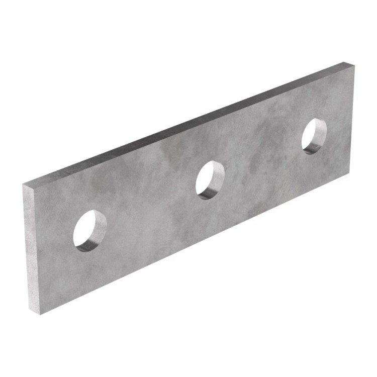 Пластина с тремя отверстиями, диаметром 13 мм, представляет собой прямоугольник, размерами 40х140 мм, толщина 5 мм, вес 0,19 кг. Защищена от коррозии цинковым покрытием, нанесенным методом горячего цинкования. Применяется для соединения различных элементов системы монтажных профилей.