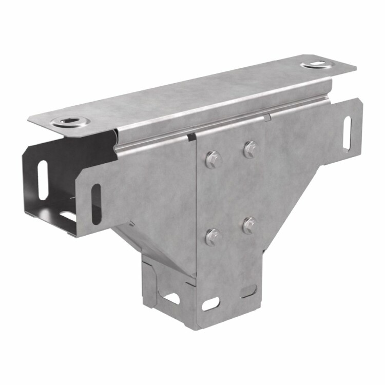 Аксессуары изготовленные из стали с защитным покрытием по методу Сендзимира – это изделия, на которых защитное цинковое покрытие было нанесено на листовую сталь перед изготовлением. Толщина защитного покрытия варьируется от 10 до 22мкм. Климатическое исполнение изделий УХЛ2, что предусматривают эксплуатацию в помещении и под навесом, при температуре эксплуатации от -80 до +150°С. Применяется для обеспечения полноразмерного ответвления горизонтальной кабеленесущей системы из лотков металлических в вертикальном направлении.
