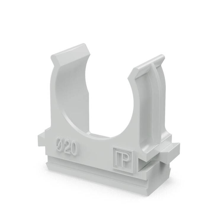 Предназначена для крепления гладких труб ПВХ или гофрированных труб одного диаметра к поверхности стен, потолков, полов или перегородок. Для монтажа предусмотрено технологическое отверстие под дюбель или саморез. Для удобства блочного монтажа состыковываются друг с другом с помощью специальных фиксаторов типа «ласточкин хвост».