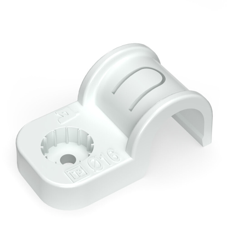 Промрукав Крепеж-скоба пластиковая односторонняя для прямого монтажа атмосферостойкая белая в п/э d16 мм (50шт/750шт уп/кор)