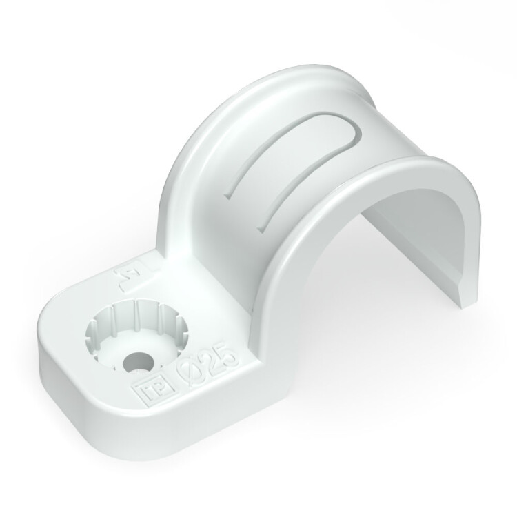 Промрукав Крепеж-скоба пластиковая односторонняя для прямого монтажа атмосферостойкая белая в п/э d25 мм (50шт/450шт уп/кор)