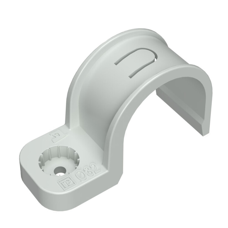 Промрукав Крепеж-скоба пластиковая односторонняя для прямого монтажа атмосферостойкая серая в п/э d32 мм (5шт/300шт уп/кор)