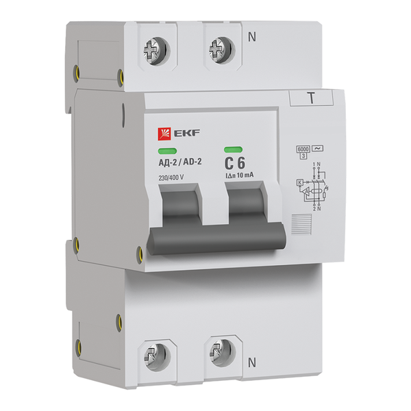 EKF PROxima Дифференциальный автомат АД-2 6А/10мА (х-ка C, АС, электронный) 6кА