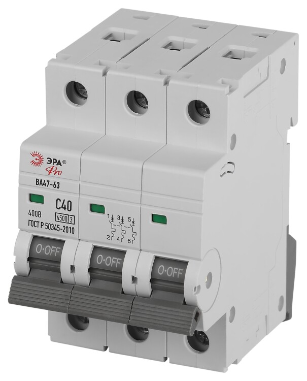 Автоматический выключатель ЭРА PRO VA63-3P40C4.5 ВА47-63 3P 40А кривая C 4,5кА