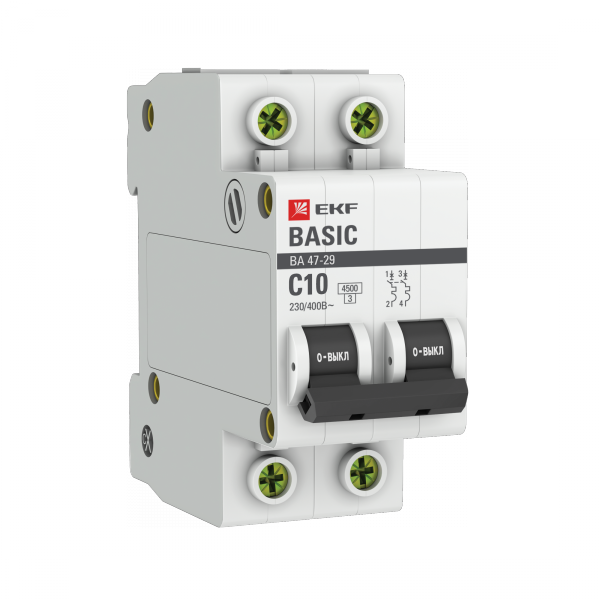 EKF Basic ВА 47-29 Автоматический выключатель (С) 2P 10А 4,5кА