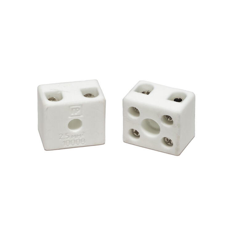 Термостойкие керамические клеммы предназначены для соединения 2-х пар всех типов медных или алюминиевых проводников сечением до 2,5 мм² , которые могут находиться под воздействием высоких температур. Габаритные размеры данной клеммы керамической составляют 21,6 х 18,5 х 14,5 мм.