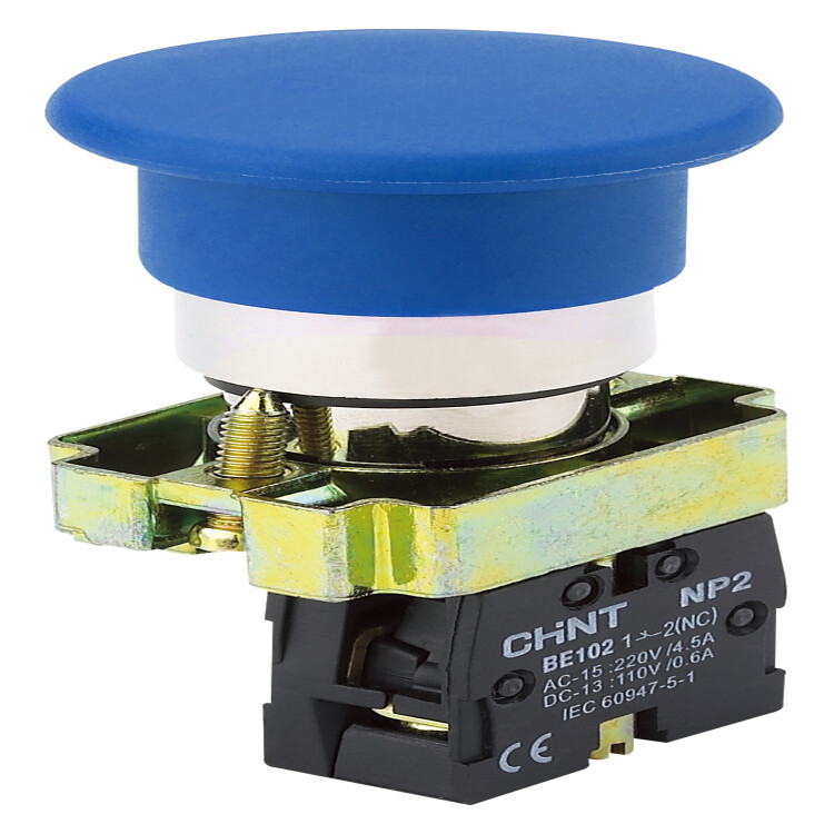 CHINT Кнопка управления "Грибок" Φ40мм самовозв. NP2-BC62 без подсветки, синяя 1НЗ, IP40 (R)