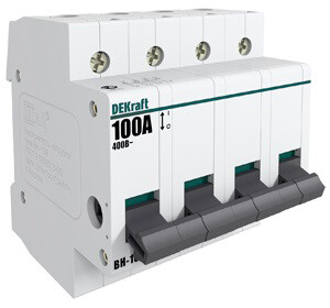 Выключатель-разъединитель серии ВН-102 Dekraft; 4P; номинальный ток 63 А; установка – на DIN-рейку; установочное положение - любое. Выключатели-разъединители применяются для ручного включения/отключения сетей напряжением до 400 В. Специальные мостиковые контакты обеспечивают надежный разрыв цепи; они полностью исключают возможность перекрытия дугой по изоляции. Усиленная рукоятка управления обеспечивает большое количество включений/отключений.