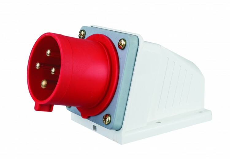 Вилка стационарная серии ВС-103 Dekraft, номинальный ток 32 А, диапазон рабочего напряжения 380-415 В AC, степень пыле-влаго защиты IP44, количество полюсов 3Р+РЕ, код CEE 524.