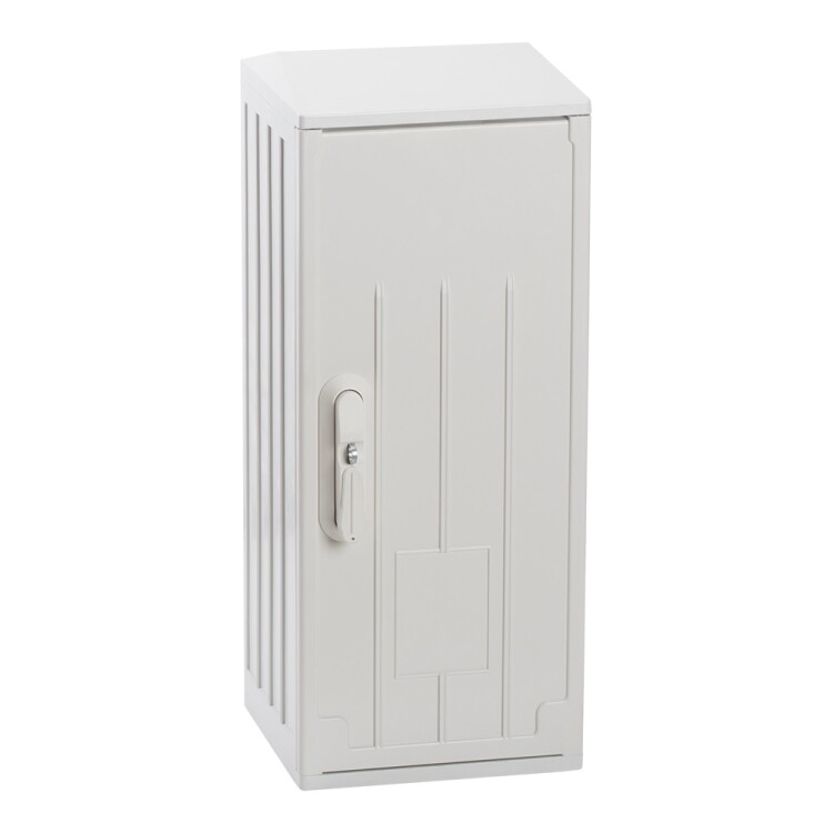 Корпус из армированного стекловолокном полиэстера шириной 264 мм, высотой 620 мм с ребристой поверхностью и наклонной крышей.