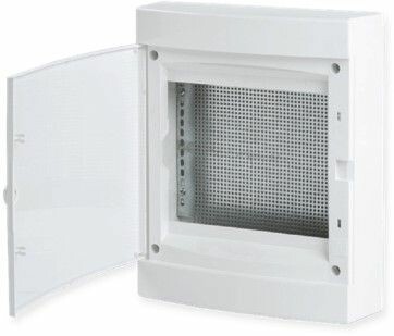 Корпуса пластиковые серии «Unix IP41» предназначены для сборки силовых распределительных и слаботочных щитов. На DIN-рейки устанавливается модульное оборудование. На монтажные платы - антенные разветвители, Wi-Fi роутеры, патч-панели и иное слаботочное оборудование. Щиты устанавливаются на поверхность стены. Ассортимент корпусов с din-рейками представлен размерами вместимостью до 72 модулей, по 12 или 18 модулей в ряду, с белой глухой или прозрачной тонированной дверью, с DIN-рейками или перфлорированными монтажными платами. Особенностью корпусов является плоское основание, упрощающее сборку и подключения внутри, лицевая панель Корпуса изготовлены из качественного глянцевого ABS-пластика, имеют минималистичный дизайн и впишутся в большинство интерьеров.