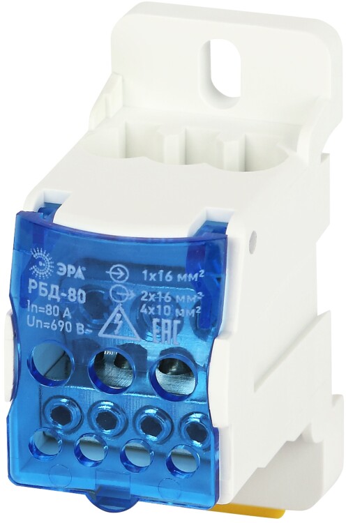 Распределительные блоки РБД на DIN-рейку ЭРА предназначены для распределения электроэнергии от проводника большего сечения на несколько проводников меньшего сечения.