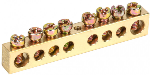 Применяются в щитовом оборудовании для подсоединения нулевых рабочих (N) и нулевых защитных проводов (РЕ). Крепление шины предусмотрено по центру (типы 8/1; 14/1) и по краям (типы 8/2 и 14/2) через изолятор нулевой шины на 35 мм монтажную DIN-рейку и через угловые изоляторы нулевой шины, а также непосредственно на панель щита. При подключении к шинам медных многожильных проводов рекомендуется оконцевание их наконечниками-гильзами. Выполнены из латуни.