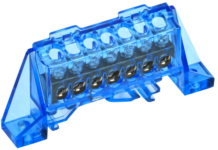 Контактная часть шин выполнена из латуни, прижимные винты из оцинкованной стали, изолятор из негорючего пластика.