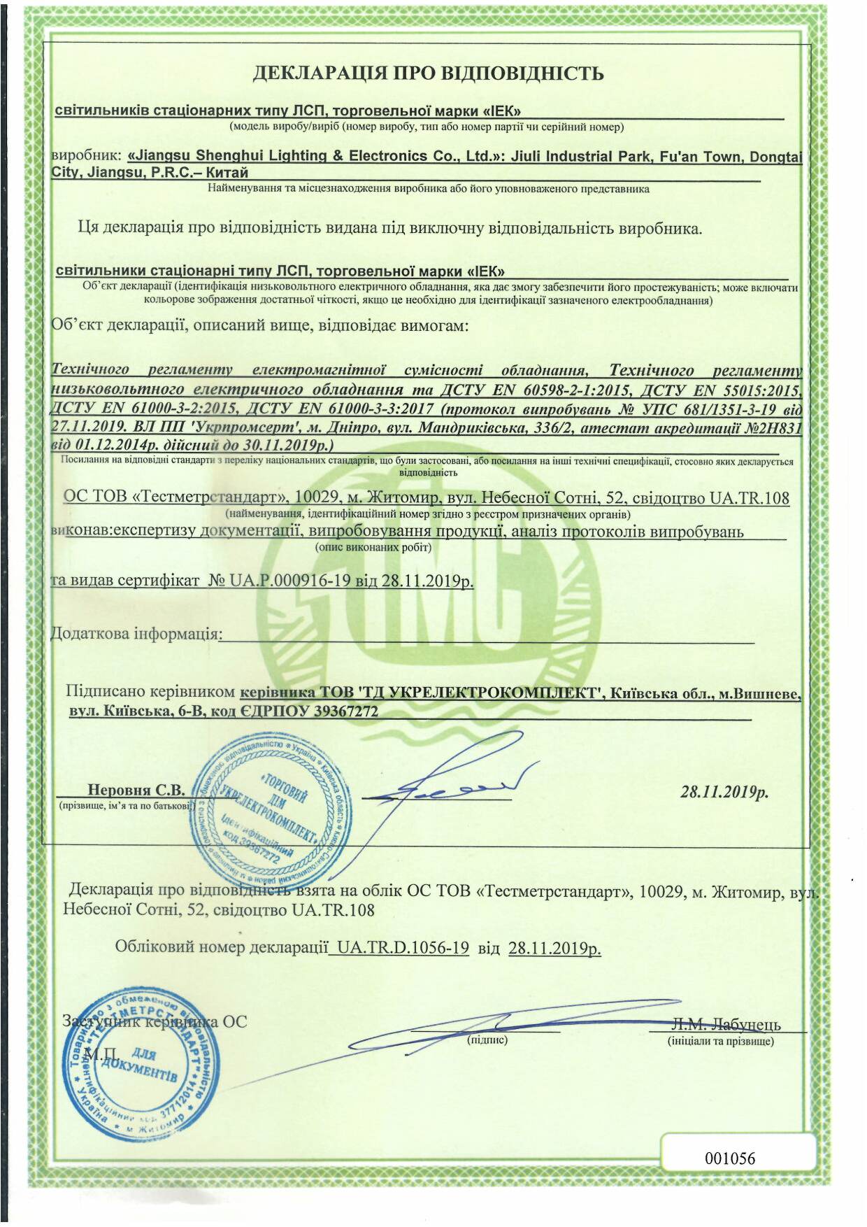 Соответствуют требованиям технических регламентов Таможенного союза ТР ТС 004/2011, ТР ТС 020/2011, ГОСТ Р МЭК 60598-1, ГОСТ Р МЭК 60598-2-1.