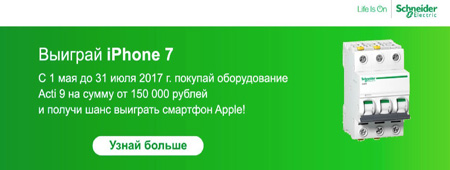 С 1 мая по 31 июля покупай оборудование Acti 9 на сумму от 150 000 рублей на нашем сайте и получи возможность выиграть Iphone 7.